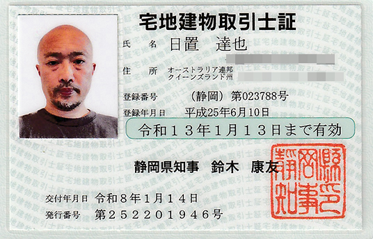 An officially registered Japanese real estate transaction agent (Takkenshi)